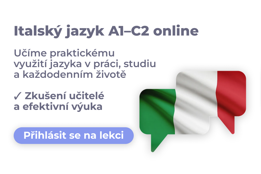 Detail kurzu a termínyChcete zlepšit svou italštinu pro práci, studium nebo každodenní život? Přihlaste se do našich pravidelných kurzů italštiny, které probíhají 2× týdně a každá lekce trvá 90 minut. Nabízíme všechny úrovně: A1–A2, B1–B2 a C1–C2. Výuka probíhá od 15:45 do 17:15 a můžete si vybrat kterýkoli den podle své úrovně a dostupnosti kurzu.