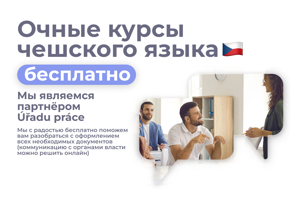 Мы предлагаем курсы чешского языка, аккредитованные Министерством образования, молодежи и спорта (МШМТ), которые ведут квалифицированные преподаватели с многолетним опытом. Как партнёры Службы занятости, мы с радостью бесплатно поможем вам с оформлением всех необходимых формальностей. Общение с госслужбами также возможно в онлайн-режиме.