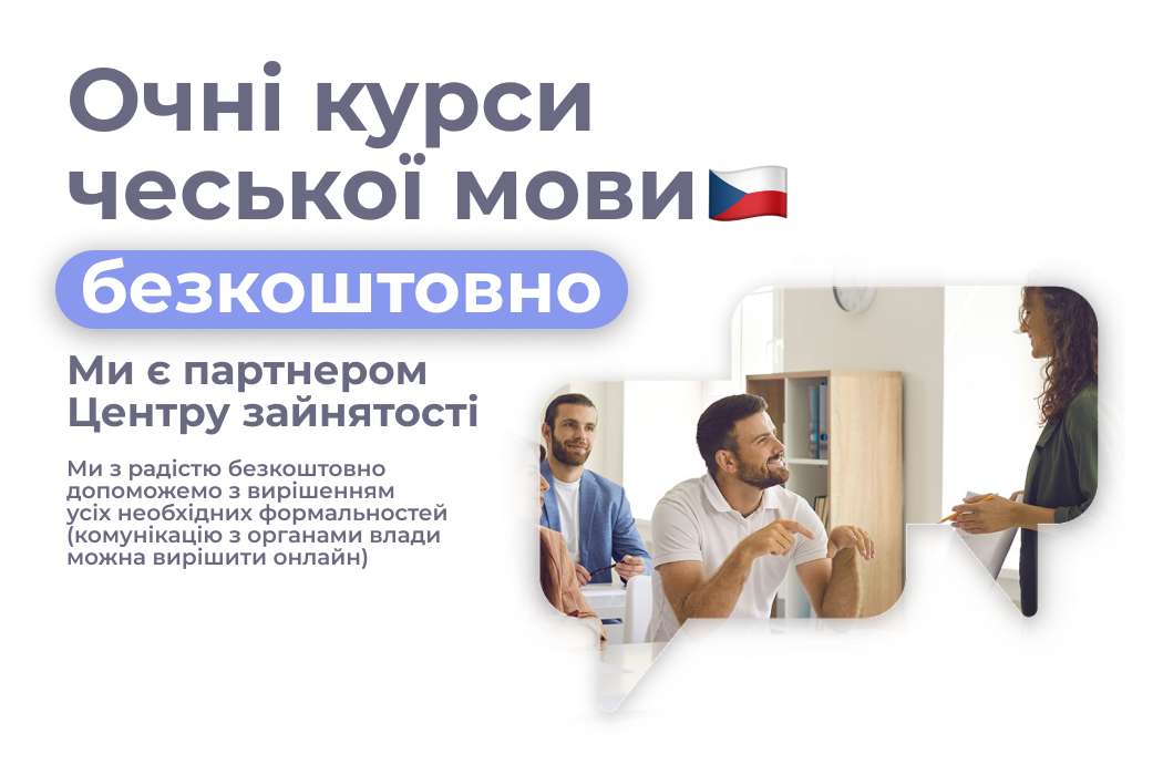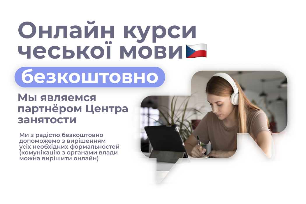 Деталі курсу та датиЧеську мову у нас можна вивчати і онлайн. Ми маємо безкоштовні рекваліфікаційні курси, оплачені Центром зайнятості. Плюс в бонус надамо Вам допомогу при комунікації з державними установами теж цілком безкоштовно.